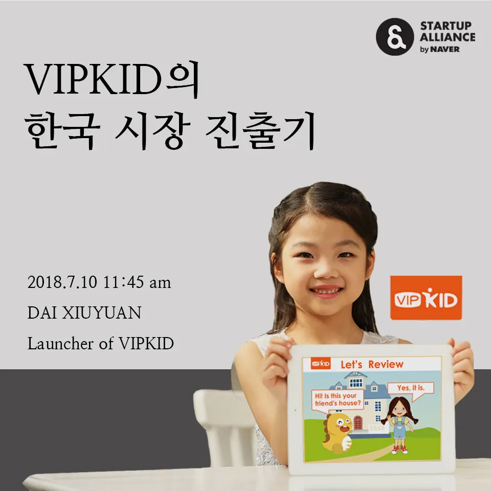 이번 테헤란로런치클럽은 전문적인 원어민 선생님에게 1:1로 영어를 배울 수 있는 온라인 플랫폼, VIPKID가 함께합니다. VIPKID는 얼마 전부터 공격적인 해외 진출을 시작했고 최근 한국 교육시장에도 본격 진출했습니다. VIPKID의 한국 지역의 런처(Laucher), DAI XIUYUAN을 모시고 ‘VIPKID의 한국 교육 시장 진출기’를 들어보세요!